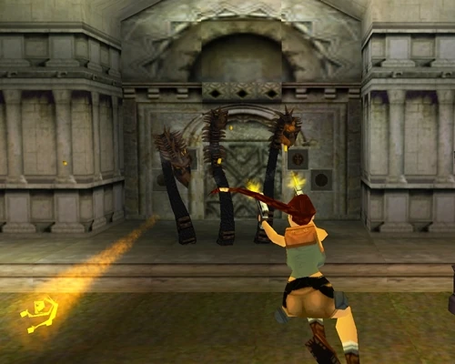 Cuando Lara obtiene las llaves, los mercenarios irrumpen en escena para consumar su plan. Lo que desconocen es que las llaves han despertado a las Serpientes Gárgolas, tres criaturas feroces que dejarán gravemente herido a Larson. Lara consigue abatirlas y se adentra en el templo. Allí es sorprendida por Pierre, decidido a acabar con ella. Con dotes intimidatorias, Lara hace que Pierre caiga por un precipicio. Sin nadie que se entrometa en su camino, Lara toma la Piedra Filosofal y vuelve a casa con ella.