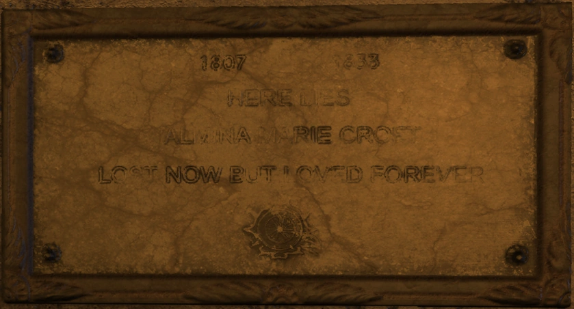 Almina Marie Croft is an ancestor of Lara Croft. Farewell note on her grave reads: "Lost now but loved forever."