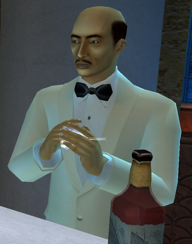 Bartender works for Toru Nishimura in Japan. During one of the parties Lara Croft came to him, so the bartender could inform Nishimura that Lara has arrived. when Shogo Takamoto and the Yakuza arrived, the bartender and the guests left as they sensed trouble.