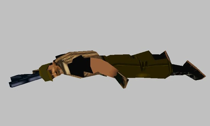 In 1998, Commander Bishop was a part of a group of soldiers in the Australian navy that were travelling to an unknown destination when their air-carrier crash landed somewhere in the South Pacific Islands. How the air-carrier crashed is unclear. The situation was not good for the soldiers. Around them were savage tribesmen and deadly dinosaurs. Exploring the area around the crash site, Bishop ventured in a large cavern that was home to a Tyrannosaurus Rex. Bishop is killed by the carnivore. On his person, he carried a key that could operate a turret back at the air-carrier. Later, Lara Croft arrives and takes the key. With another key from the also dead Lieutenant Tuckerman, she makes use of the turret to deal with opposition and assist the surviving soldiers.
