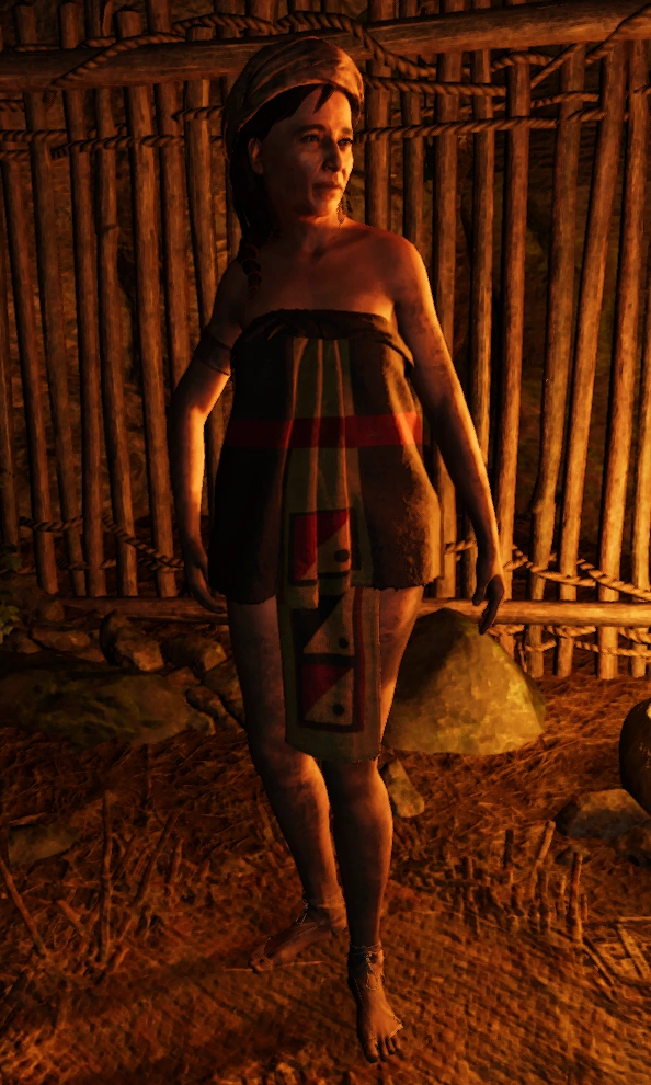 Chasca didn't have children of her own, but she was midwife to her mistress, and cared for her three children. The youngest one, named Kayara, took a jade necklace when visiting a friend. Chasca knew that the girl would be cast out, and lied that she took the necklace. Her mistress then took the necklace and threw it on the ground breaking it. Chasca was cast out instead, she lost her job and position. She now lives in a cave near Paititi, and weaves like her mother taught her. Kayara occasionally visits her.