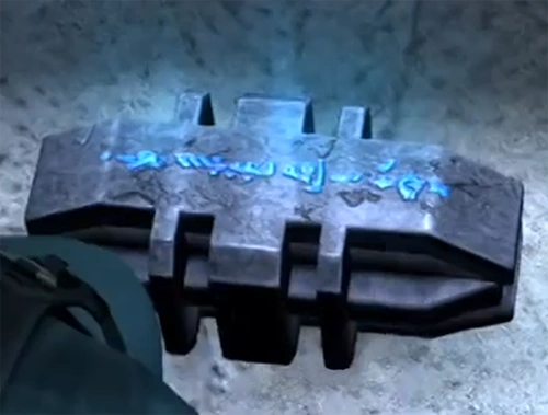 Lara Croft found an old file of her father describing the artefact, and returned to the remains of her manor, to search for it. She found it just in time for Doppelgänger's arrival, and used the word to release her from ever taking commands again.