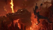 Lara Croft reunited with Jonah Maiava in Mission of San Juan before returning to Paititi. He told that some of the Trinity soldiers had found some old and set up a base camp there. The ruins were built for priests of Zipacna. Many people still visited ruins before the soldiers took over them. Abigaile Ortiz thinks it has something to do with the tremors and ash not stopping. Lara offered to go see what is going on in the ruins. Lara found the Crab Relic amongst the Trinity supplies, and decided to take the artifact back where it belonged. It however was an ambush Trinity had set up for her. Lara killed the Trinity soldiers and returned the Crab relic. to the ancient machine, which did stop the tremors and ash. Lara then returned to Jonah and Abby to let them know what had transpired.