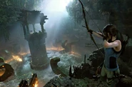 The collectibles of this DLC go under To Challenge a God artifact collections. During the completion of this DLC challenge tomb Slayer's Gauntlet, player is awarded with "Divine Bounty" skill, which allows Lara to loot more Gold Pieces from enemies.