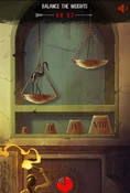 The player must match the weight of the statue by selecting the correct ones out of 4 different weights. Time limit is 15 seconds.