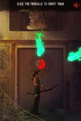 Player must click the fireballs that fly towards Lara, if one of them hits, it's game over.