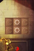 On a board of 3x2 there are six symbols, either the moon or the sun, the player must cover the board with sun symbols. Time limit is 15 seconds.