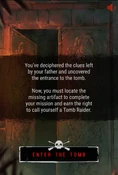 Lara has deciphered the clues left by her father and uncovered the entrance to the tomb.