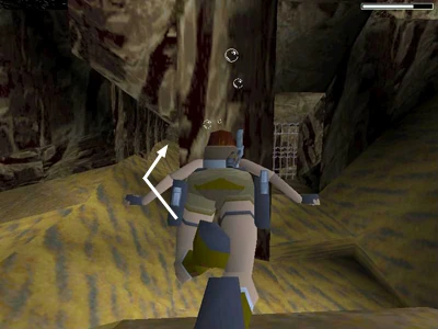 ALTERNATE METHODS FOR GETTING OUTSIDE THE FENCE NEAR THE END OF THE LEVEL: There are several ways of getting out of the fenced-in area into the desert. One method is described above. You can also use the fence bug to get through the fence near where you picked up the two boxes of shotgun shells. Or, you can use a slightly tricky but completely legal jump in that same fenced-in area. Details and screenshots are below. (Thanks to Jeff Reid, John Witzel and Theresa Jenne for the fence bug info. More thanks to Berty for the legal fence jump and to Gary Mitchell for the jump from the bridge to the desert.)