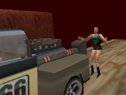 In this 1998 game, character similar to Lara is among the potential victims to be crushed with your car, one would find an certain 'Cara Loft' dressed in a similar clothing to Lara.