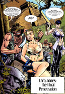 Eros Comix has created a character, Lara Jones, for their mature audience comic books with a reference to Lara Croft and Indiana Jones by combining their names. Lara Jones is a treasure hunter with a long blonde braided hair, wearing shorts and a tank top.