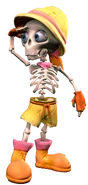 In the 2017 game, Yooka-Laylee, Clara Lost is a supporting skeleton character in the game who appears three times in different worlds. She is a self-proclaimed explorer who often gets into trouble often involving baddies. Her name is a pun of Lara Croft, and her appearance features a shorts, mittens, boots and a ponytail. Her concept art appearance relies even more on the classic appearance, with a classic braid.