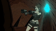 The rest of the episode involves the team traversing a booby trap filled building in Egypt. Wells uses a grapple gun similar to the one Lara used in Tomb Raider: Underworld.