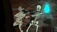 In Ugly Americans Season 2 episode "Mummy Dearest", Lara Croft dodged traps to reach an artifact, but a mummy sucked away her life, leaving her just a skeleton.